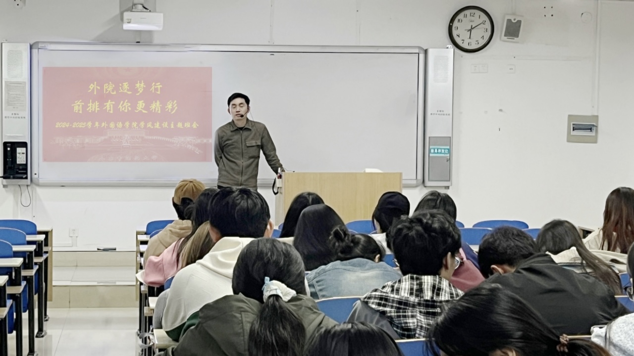10月17日,学院辅导员召开“外院逐梦行 前排有你更精彩”学风建设主题班会,针对学院目前各年级在学习状态、上课出勤率、课堂师生氛围等多方面的现状进行了总结,并提出了具体的改进措施和建议,促使学院学风建设工作继续稳步前行。