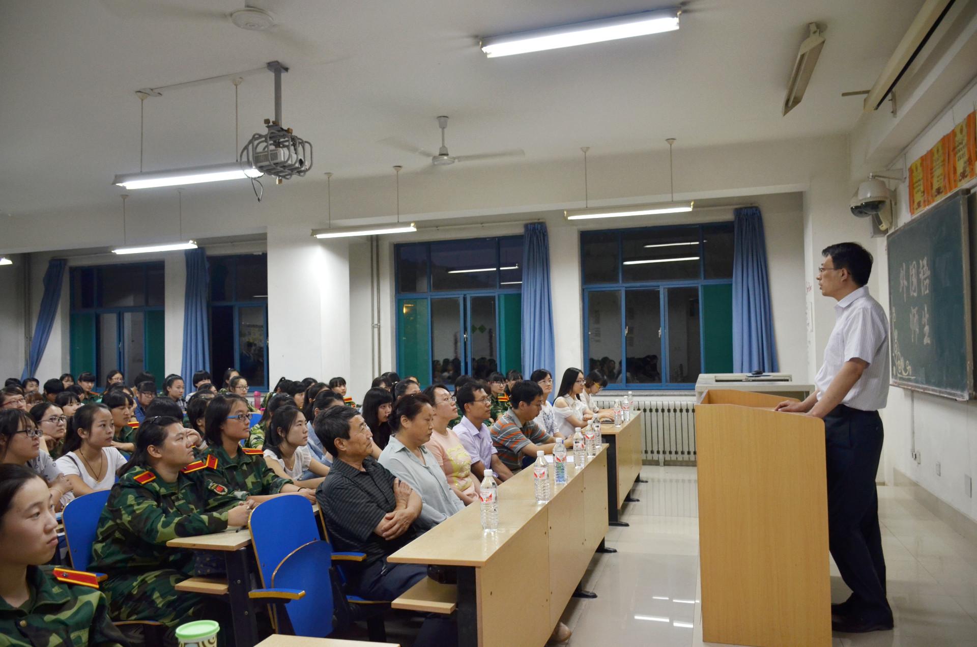 表示真挚地祝贺和热烈地欢迎,简要介绍了学院的基本情况并对2015级同学们寄予了希望、提出了要求。李院长希望同学们要珍惜大学四年美好时光,尽快适应大学生活,认真规划好、设计好自己未来的学业和生活;叮嘱新生秉承“厚德怀仁、博学笃行”的校训,遵规守纪、诚信友爱,努力学习、勤于思考,积极实践、进取创新,不断提高自身思想道德修养、专业知识水平和能力,学会做人、做事、做学问。最后,他借用习近平总书记在纪念中国人民抗日战争暨世界反法西斯战争胜利70周年讲话中提到的古语“靡不有初,鲜克有终”来提醒、告诫同学们要坚定理想信念,持之以恒,拼搏进取,去努力实现自己的梦想。李院长殷切诚挚的话语感染了在场的每一位新生。