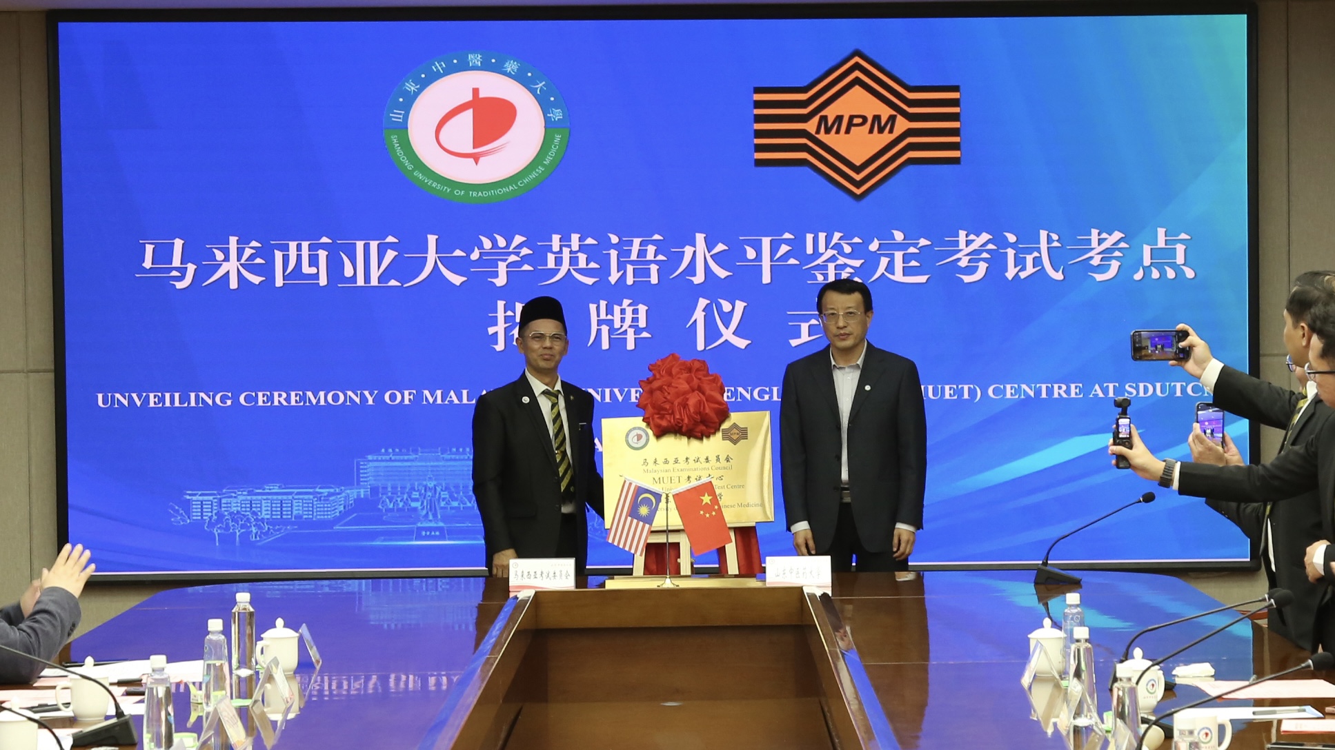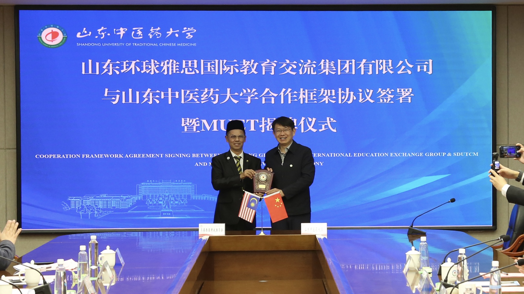 仪式上,马来西亚考试委员会代表介绍了MUET考试情况。学校与山东环球雅思国际教育集团签署《合作框架协议》,马来西亚考试委员会为我校MUET考点授牌。