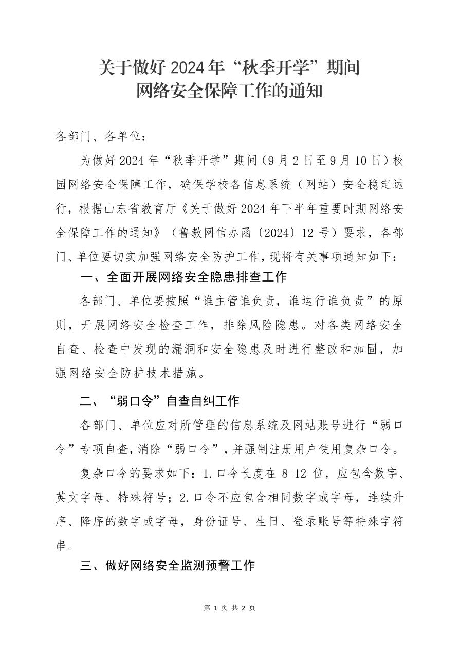 关于做好2024年“秋季开学”期间网络安全保障工作的通知