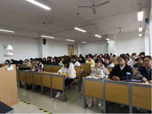 王老师介绍了专四考试机制,分析了历年考试情况,分题型讲解了听写、听力理解、语言知识、完形填空、阅读理解、写作六部分的失分因素以及应试策略。讲座结束后,考生们就备考过程中遇到的问题、存在的困惑、备考的心得技巧等问题进行了交流提问。王老师一一进行了解答。本次讲座加强了同学们对于专四题型的认识,增进了师生之间的交流,帮助考生梳理了备考方向。