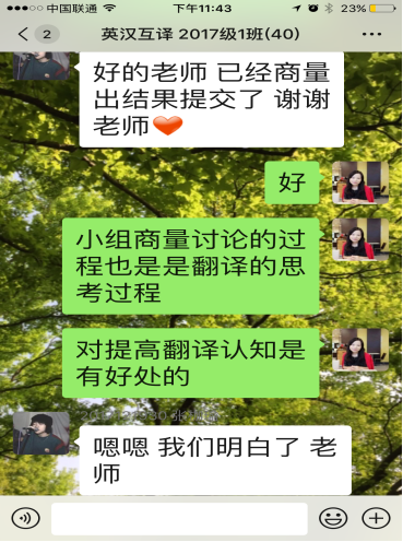 《英汉互译》课程偏重翻译理论的输入,为帮助学生更好地理解英汉翻译的基本理论和技巧,并能在翻译实践中灵活运用,教研室在组织任课教师进行集体备课时,着重强调在线授课内容要充分体现时事性、共鸣性和潮流行,以引起学生的学习兴趣为出发点进行教学内容的设计。
