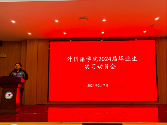 召开2024届毕业生实习动员会。副院长陈战、团总支书记王振宪、教学秘书崔燕花、辅导员翟艳美、2024届全体毕业生参加会议。