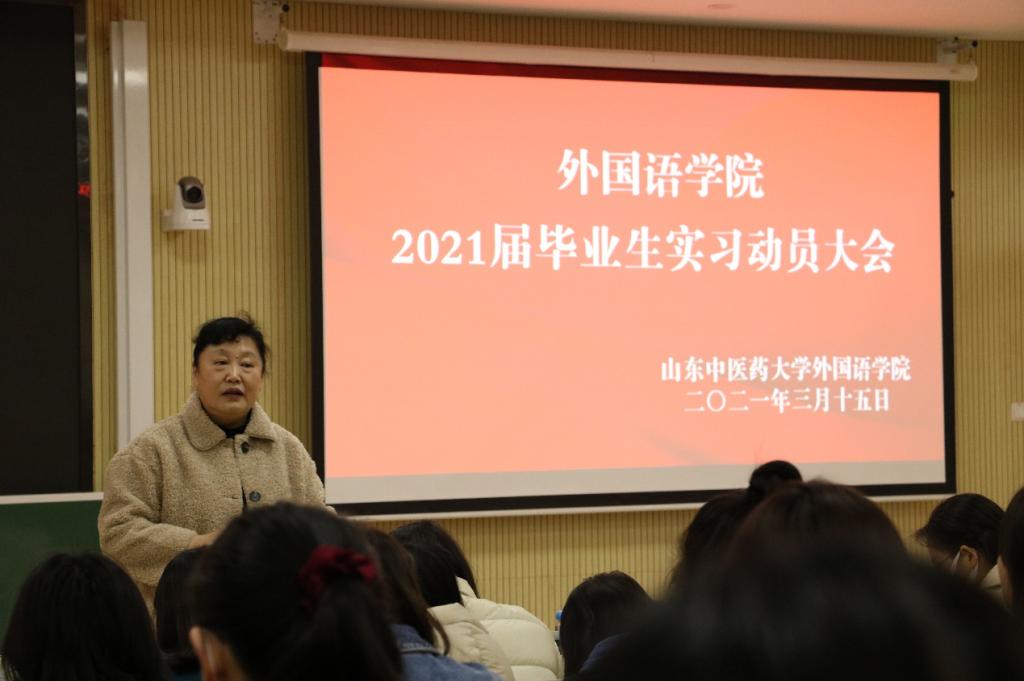 在长清校区31JT1教室召开2021届毕业生实习动员大会,教学副院长孙慧主持会议。院团总支书记、教学秘书、2021届全体毕业生参会。