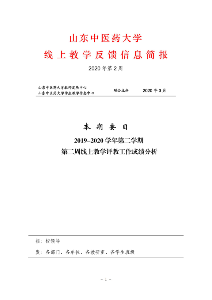 教学质量信息简报第二期(2019-2020学年第二学期第二周线上教学评教工作成绩分析)