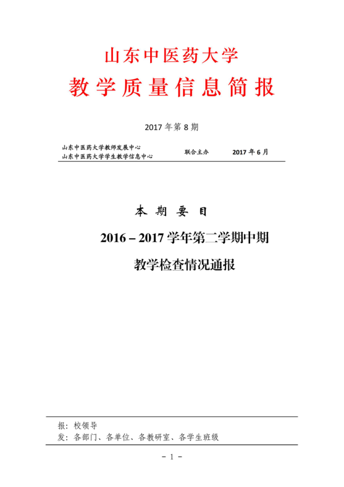 教学质量信息简报(2016-2017学年第二学期中期教学检查情况通报)