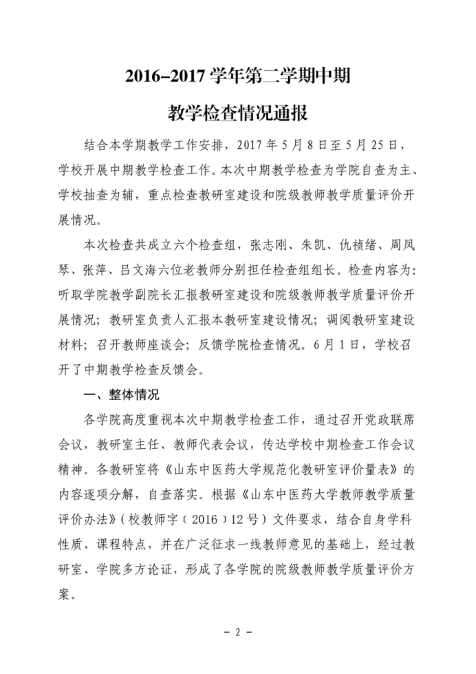 关于开展2016~2017学年第二学期中期教学检查工作的通知
