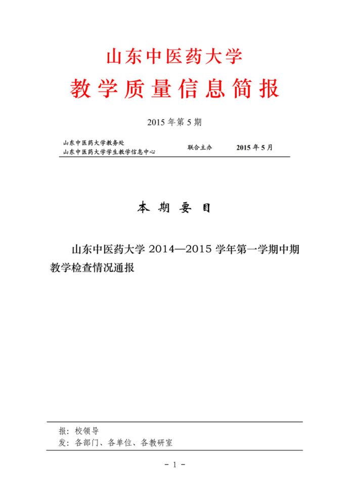教育质量信息简报(2014-2015学年第一学期中期教学检查情况通报)