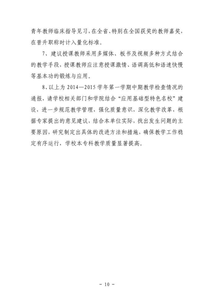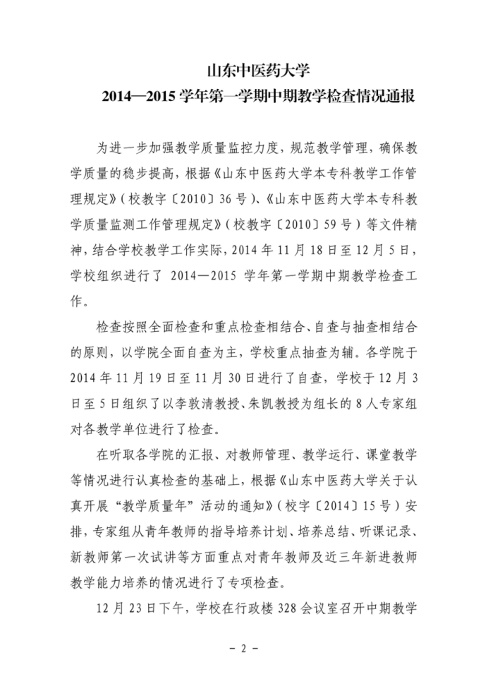 关于开展2014~2015学年第二学期中期教学检查工作的通知