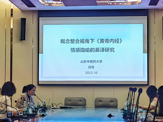 的发展历程、中医英语教学的开展状况以及中医英语教学面临的问题与发展策略。邱冬老师在“语言·翻译文化”平行论坛作题为“概念整合视角下《黄帝内经》情感隐喻的意义建构及英译研究”的报告,探讨如何运用概念整合理论理解和翻译《黄帝内经》中的情感隐喻。