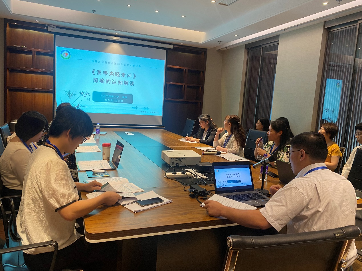 2023年7月14-16日,由中国中医药研究促进会传统文化翻译与国际传播专业委员会主办、滨州医学院承办的“传统文化翻译与国际传播高端学术论坛”在山东烟台举行。学院副院长、中医药国际传播及中医典籍英译青年科研创新团队召集人陈战教授作题为《<黄帝内经素问>隐喻的认知解读》的报告,团队成员丁彦敏老师在分论坛作题为《贸易视角下古代中国与印度的药材交流》的报告,学院部分教师参会学习。