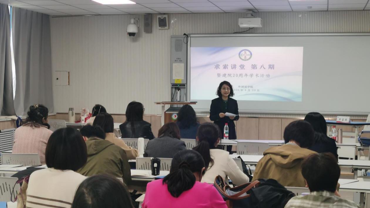 在长清校区仲景楼310教室成功举办第八期“求索讲堂”,这也是学院建院20周年系列学术活动之一。山东大学特聘教授、博士生导师、教育部新世纪优秀人才申富英应邀莅临,作题为《高水平人文社科项目申报技巧与策略》的专题讲座。学院党委副书记、院长苏娜娜主持会议,党委副书记田原、副院长李成华出席会议。