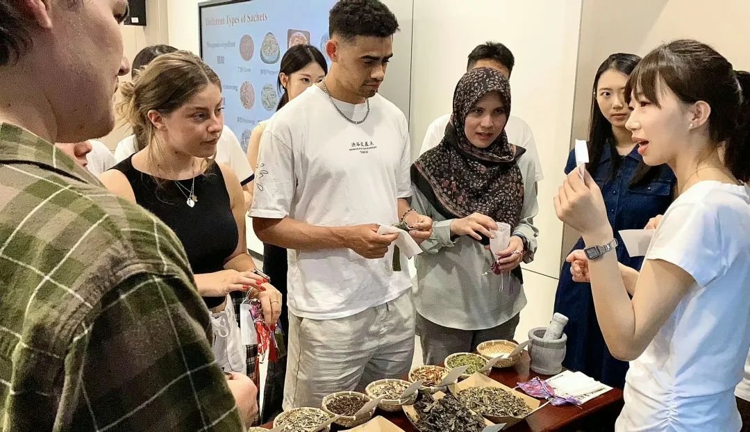 联合中医学院,与英国卡迪夫大学来访交流学者在药研院306会议室共同举办了主题为“感知东方智慧 共筑文化桥梁”的文化交流活动。此次活动旨在通过沉浸式、多感官的文化体验,增进中英师生之间的理解与友谊,推动中华优秀传统文化的国际传播。