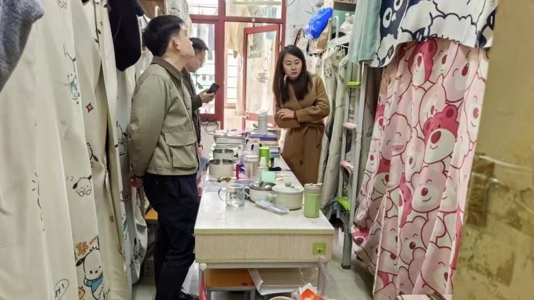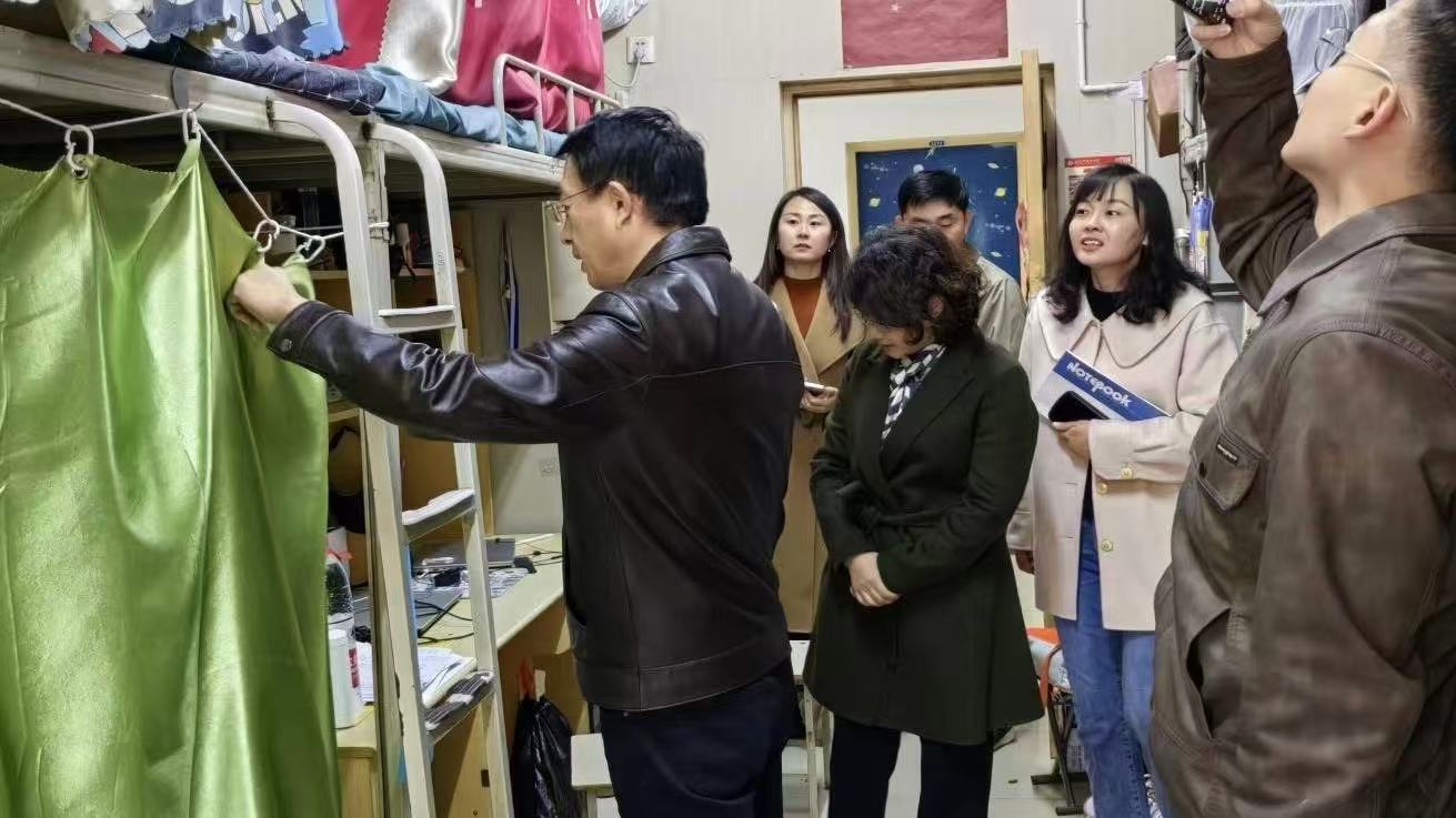 苏娜娜在检查过程中强调:“学生宿舍是学校育人的重要阵地,在思想政治引领、优良学风养成以及安全意识提升等方面发挥着不可替代的作用。”她对进一步做好学院宿舍管理工作提出三点意见:一要树立底线思维,牢固树立“隐患就是事故,安全工作永远在路上”的理念,努力为学生营造安全向上的成长成才环境。二要加强管理,健全制度,形成长效机制。进一步完善学院宿舍安全卫生检查制度,明确频次、责任,及时发现隐患,坚持问题导向,从源头上整改治理。三要加强宿舍文化建设,营造浓厚育人氛围。进一步发挥学生干部、学生党员的模范带头作用,创新形式载体,营造良好的宿舍文化环境。