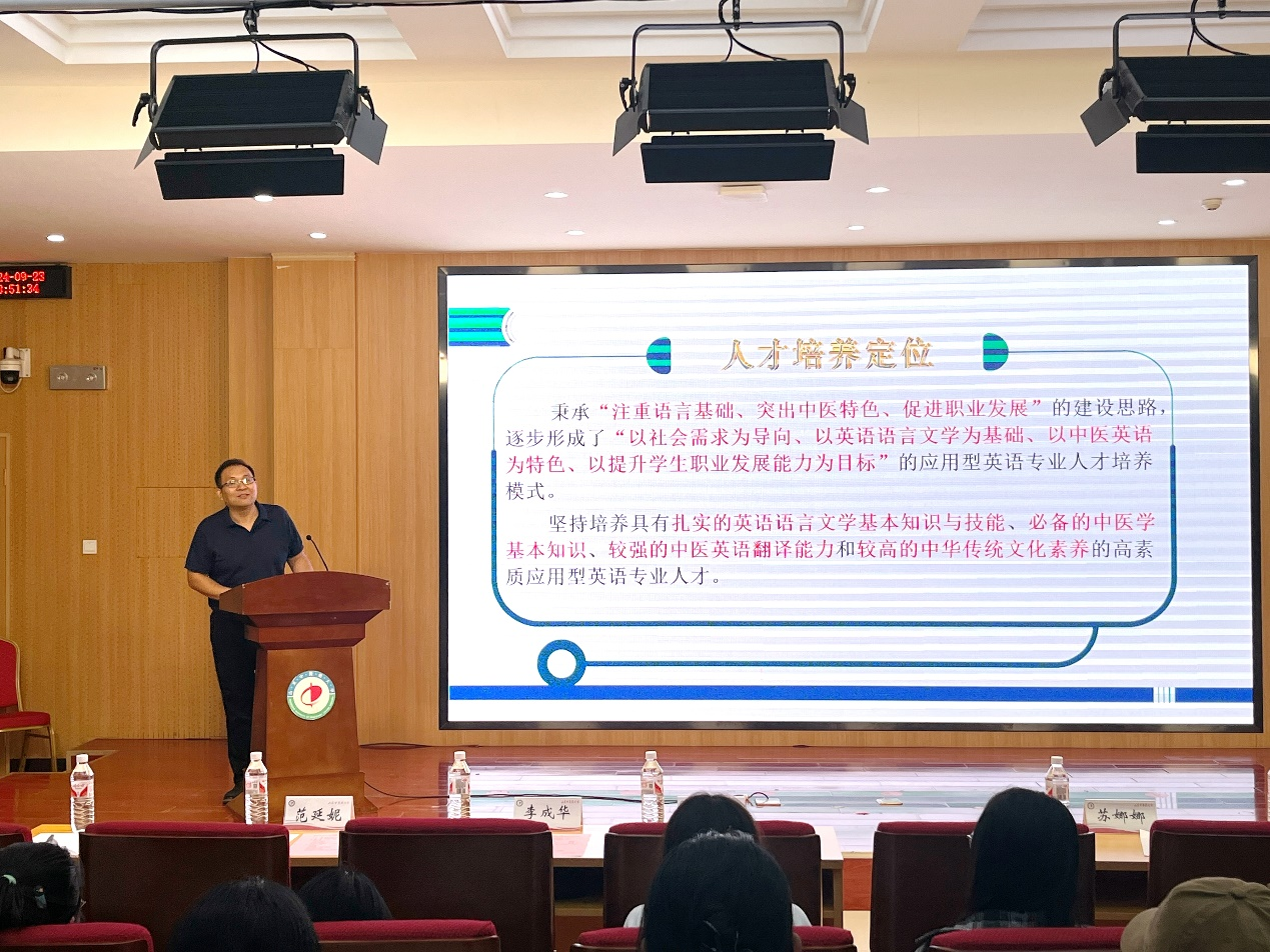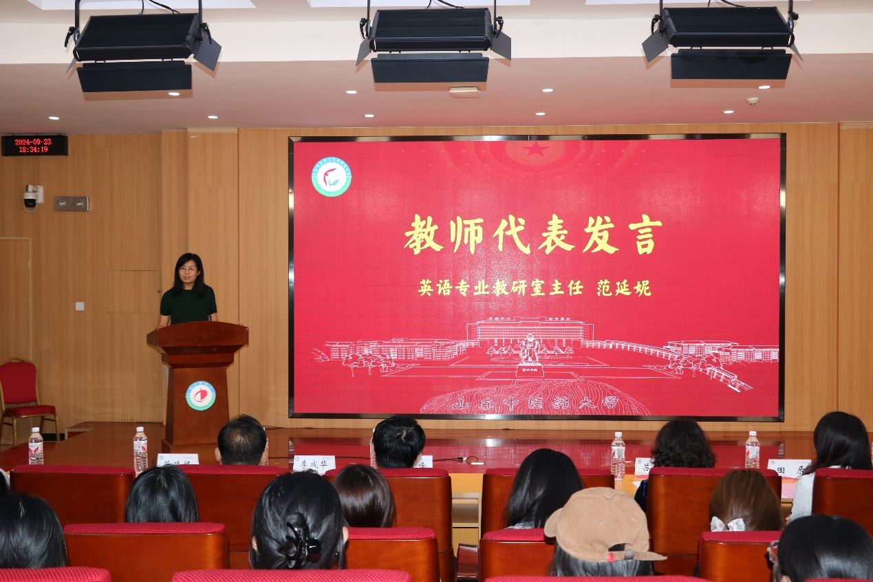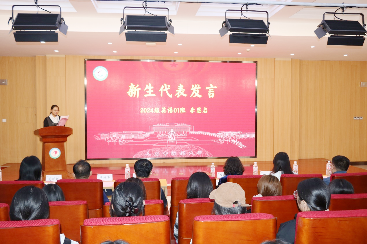 范延妮强调“热爱英语专业”的重要性,勉励大家要以满腔的热情拥抱这一充满魅力的学科,同时以“敞开胸怀、语通中外”八字箴言,激励新同学在英语专业的学习中不断追求卓越。