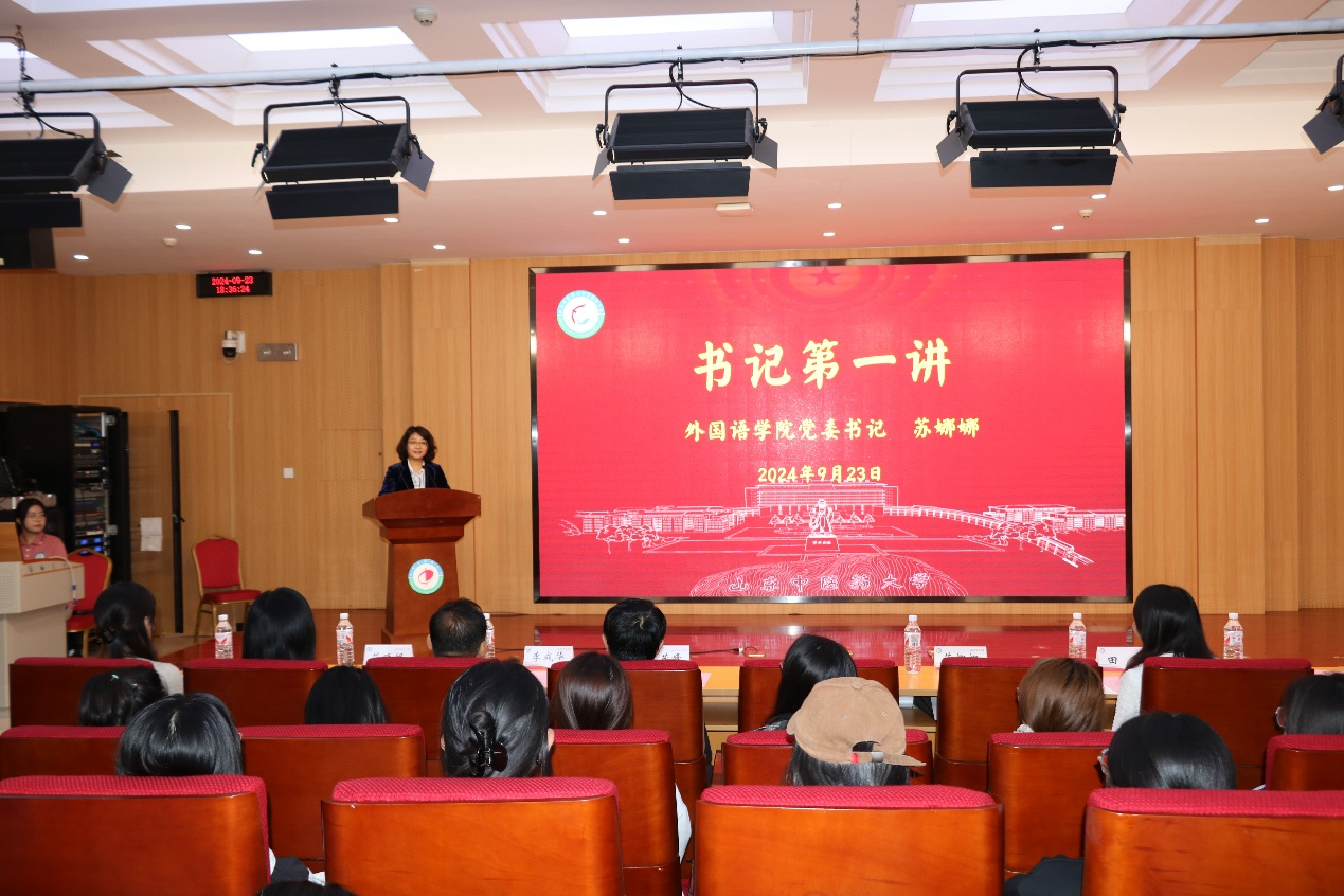 9月23日下午, “追梦外国语,奋进新征程” 2024年开学典礼暨新生入学教育大会在三教第二报告厅举行。学院党委书记苏娜娜,院长李茂峰,党委副书记田原,副院长李成华,英语专业教研室主任范延妮,校友代表刘洋出席本次大会。会议由吴学强老师主持。