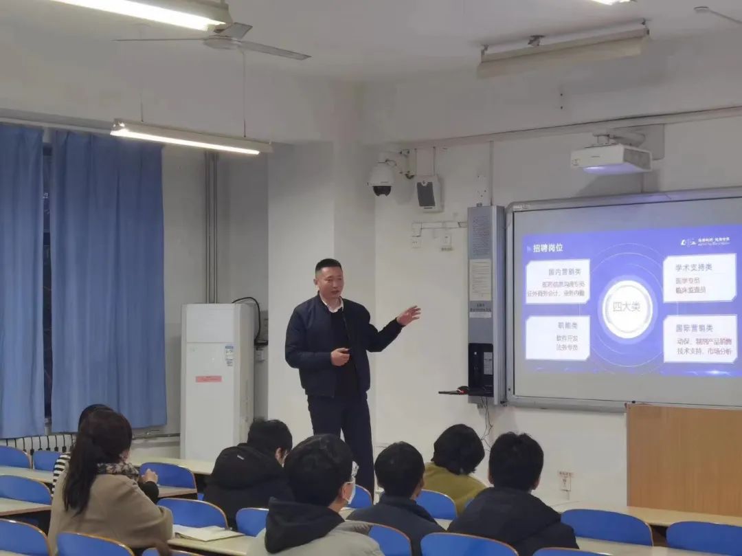 宣讲会上,鲁南制药校园招聘经理陈为星详细介绍了公司的定位、历史沿革、发展理念、经营和研发方向。在他的详细介绍下,同学们了解到该公司主要经营方向和岗位需要。