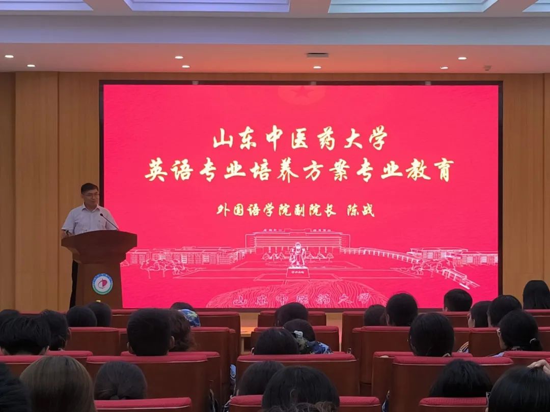 特色英语更要有信心,认为同学们要成为德、智、体、美、劳全面发展的、有英语语言文化知识、初步的中医药知识的专业人才,介绍了学院的总体培养目标、基本培养要求、课程学分安排等,让同学们对未来四年发展有了更详细的了解,最后,他希望同学们“以梦为马,只争朝夕;不负韶华,勇往直前”。