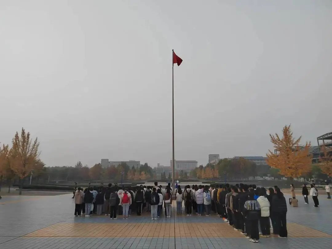 10月31日清晨,太阳初升,映着黄灿灿的树叶,秋意盎然。由学院团总支主办,学院学生会学习部承办的”厚植爱国情怀,践行爱国使命”主题升旗仪式在中兴湖广场举行。学院团总支书记,学工办主任王振宪老师,2022级全体同学以及第十八届学生会全体成员参加本次升旗仪式。