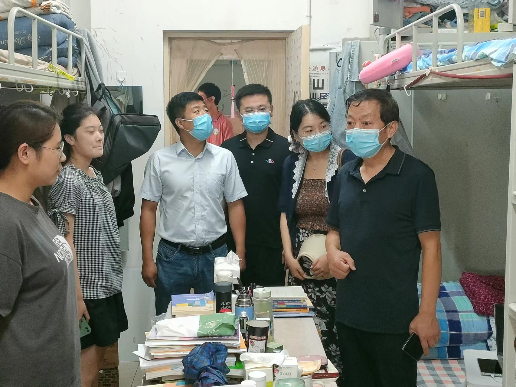为营造安全、卫生、整洁的学生宿舍环境,确保疫情期间学生宿舍安全稳定有序,9月4号上午,学院党总支书记李子峰一行走访学院长清校区学生宿舍,慰问封校期间学生学习生活状况,检查宿舍内务卫生及安全工作。