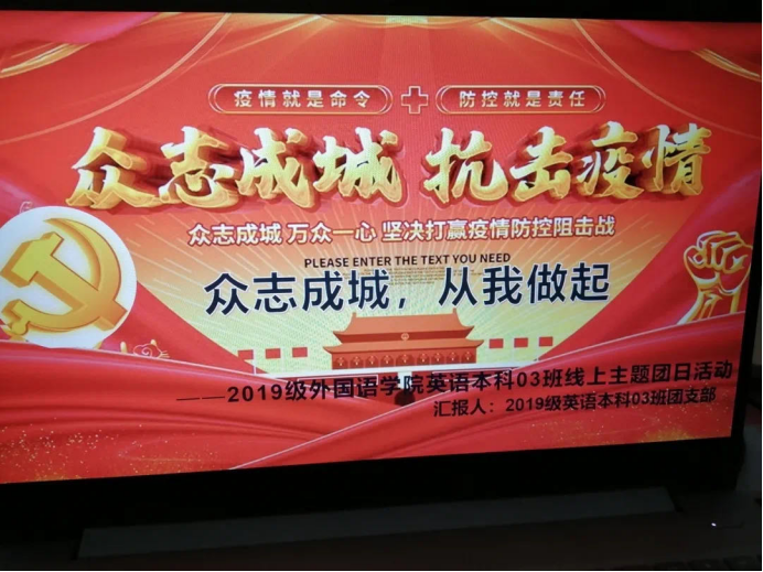 上下齐心,战“疫”必胜。支部开展“众志成城,从我做起”线上主题团日活动,通过主题团日活动的形式组织团员认真学习《习近平总书记给在北京大学首钢医院实习的西藏大学医学院同学的回信》和《习近平总书记给北京大学援鄂医疗队全体“90后”党员的回信》,分享关于新冠肺炎疫情的科普性文章,引导团员加强时间规划,提高学习效率。此外,支部还鼓励团员积极参加“疫”路有你征文投稿、学习强国平台征集等活动,为战“疫”贡献力量。