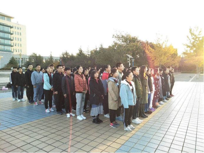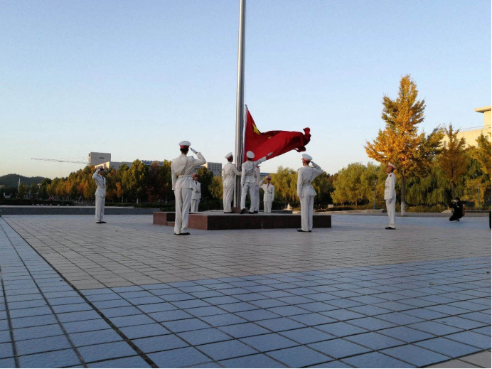 金秋十月,迎着朝阳,沐浴着带有些许寒意的晨风,国旗班成员们以饱满的热情迈着铿锵有力的步伐来到了国旗台下,当雄壮有力的《义勇军进行曲》响起时,鲜艳的五星红旗冉冉升起,同学们行注目礼,全场弥漫着一种庄严肃穆的氛围。