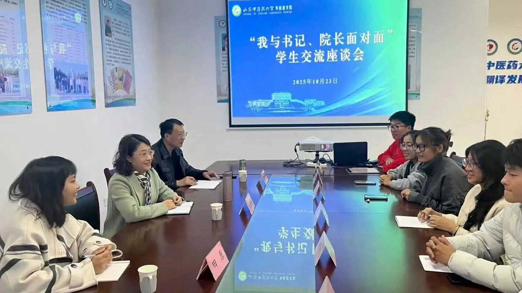 在华佗楼617会议室召开2025年第三期“我与书记、院长面对面”学生交流座谈会,倾听新生诉求,共谋成长发展。学院党委书记苏娜娜、院长李茂峰、党委副书记田原出席并与学生亲切交谈。