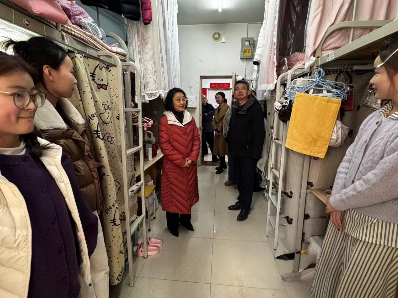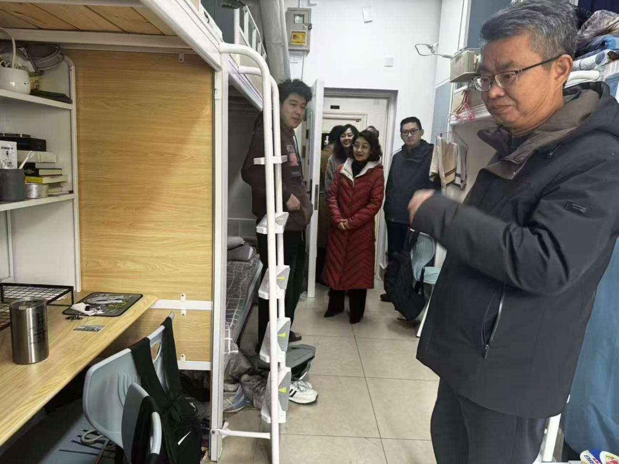 走访过程中,学院领导与同学们亲切交谈,仔细询问大家寒假期间的生活学习情况、返校过程以及新学期的规划与需求。领导们重点排查了学生宿舍的用电设施、消防器材及卫生环境,叮嘱同学们要尽快调整状态,以饱满的精神面貌投入新学期的学习生活中,同时务必增强安全意识,注意用电、防火及人身财产安全。同学们对领导老师的到来感到惊喜与温暖,纷纷表示将不负期望,勤奋学习,努力成长。