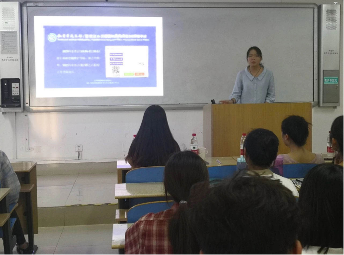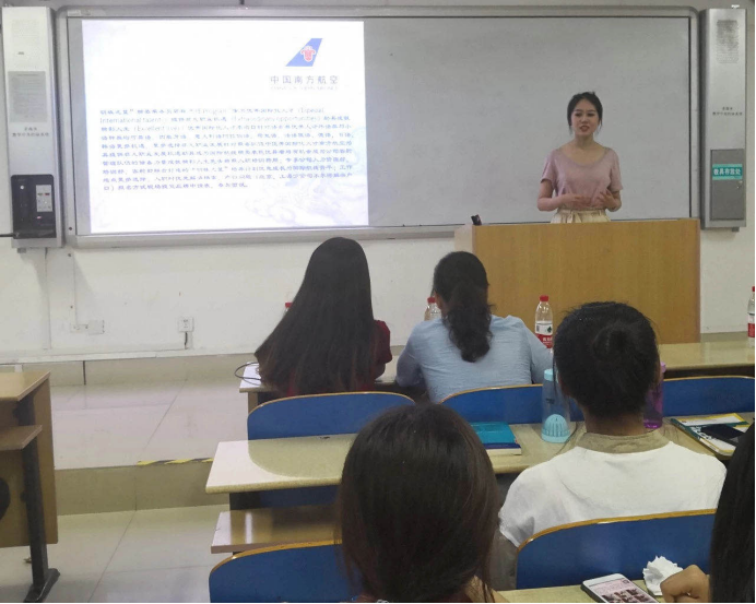 第三位主讲人李双,现于中国南方航空公司接受培训、考核。李双介绍了该公司的发展前景、重点项目以及招聘信息,鼓励大家要学好专业知识的同时也要了解多方面知识,开阔眼界,全方面发展。