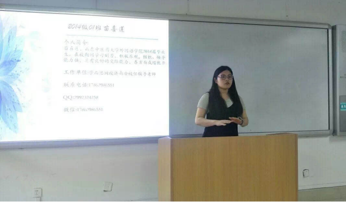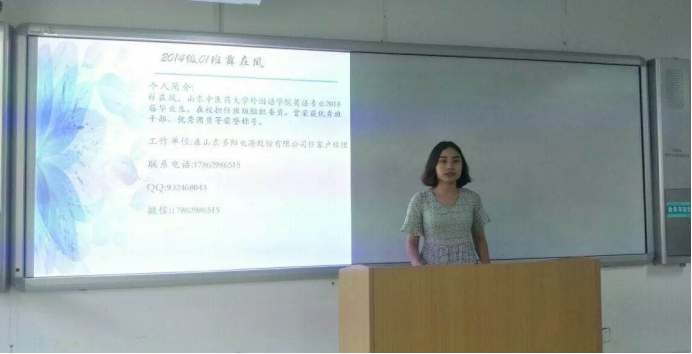就业经验交流会在长清校区1207教室举办。主讲人为2018届已就业的毕业生代表,辅导员李晓璇老师和2015级全体同学到场聆听。