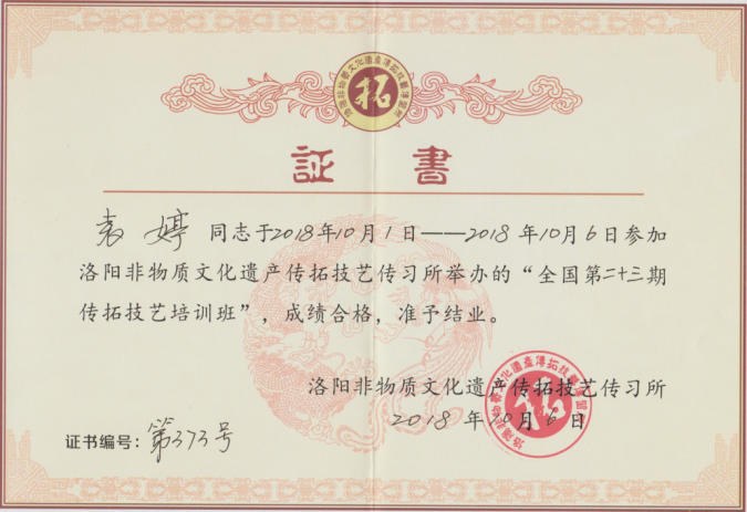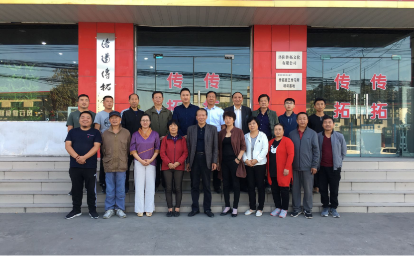 教工第三党支部支部书记袁婷,向 “洛阳裴氏非遗传拓”传承人裴建平,学习“清水拓”非遗技艺。
