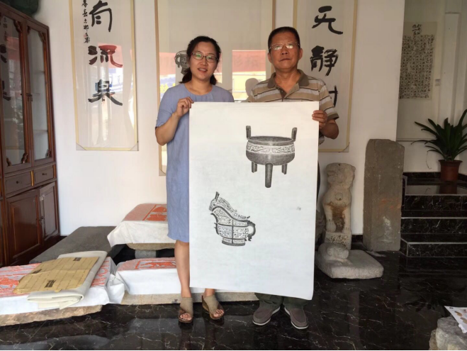 教工第三党支部书记袁婷,向曲阜师范大学书法学院实践基地、曲阜“邹鲁金石传拓研习馆”徐夫华馆长,学习金石传拓技艺。