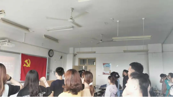 随后,支部组织开展毕业生党员“四个一”学习教育活动。即重温一段入党誓词,再过一次政治生日,分享一段党史学习心得,参加一次专题组织生活会。毕业生党员代表结合自身实际,分享了自己的党史学习心得;李耀东同志代表学生党支部为毕业生党员代表发放政治生日贺卡;全体党员共同举起右拳,重温了入党誓词。