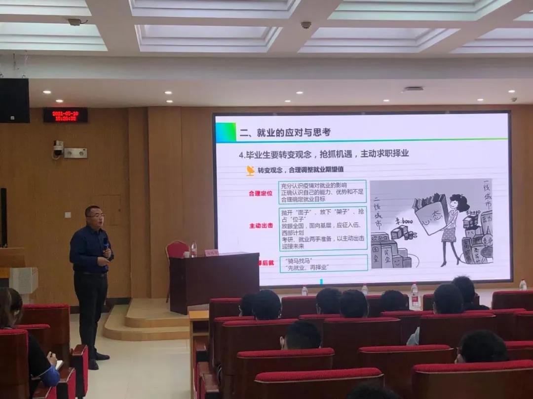 本次课程邀请到学校招生就业处副处长刘同国作专题报告,内容结合英语专业特点,重点围绕就业形势与观念、高校就业的应对与思考、就业手续及流程三个方面进行了深入讲解。引导学生树立正确的就业和择业观念,熟悉就业工作流程,掌握求职择业的技巧。