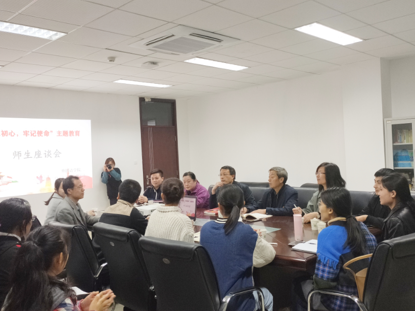 在行政楼502开展“不忘初心、牢记使命”主题教育师生座谈会。院长李茂峰主持会议,党总支书记李子峰、副院长孙慧、教研室老师、全体辅导员以及2019级新生代表参加此次座谈会。