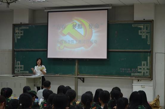 刘书记围绕“安全文明教育”的主题,从学习、生活、德行、育人等各个方面进行了详细的阐述。学生党员代表刘瑞艳、李振勇、庄雪等三位同志带领新生学习“习近平阅兵式讲话”“习近平关于青年要践行社会主义核心价值观的讲话。