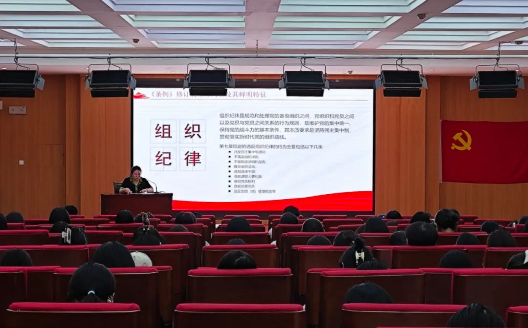 本次培训邀请到学校纪检监察室副主任孙文君作学习解读新修订《中国共产党纪律处分条例》(以下简称《条例》)专题报告。会议伊始,孙文君表明要认识修订《条例》的重要意义,扎实推进党纪教育。然后围绕新修订的《条例》,从《条例》的主要内容、鲜明特征等方面对《条例》进行详细解读,并结合关于违反政治纪律、工作纪律、廉洁纪律的典型事例进行深入讲解,既有理论讲解,又联系实际,警醒我们要不忘初心,恪守原则。通过这次党课,老师和同学们纷纷表示要进一步加深对《条例》的学习和理解,坚定自身理想信念,进一步强化纪律意识,加强自我约束,不忘初心,牢记使命,努力成为一名合格的共产党员。